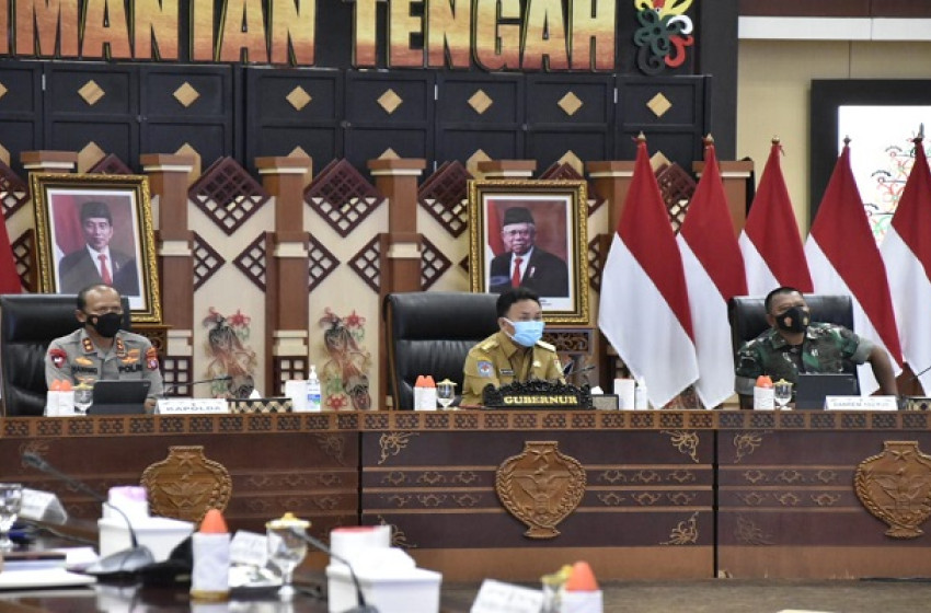 Seusai mengikuti arahan Presiden, Gubernur Kalteng langsung marathon gelar rakor dengan Bupati/Wali Kota secara virtual di tempat yang sama. Gubernur didampingi Forkopimda Prov. Kalteng serta Instansi Vertikal/Organisasi Perangkat Daerah Prov. Kalteng. (OR1)