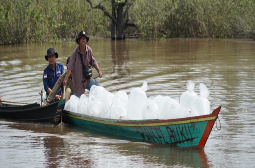 Proses restocking ikan oleh Pemko Palangka Raya di sejumlah danau.