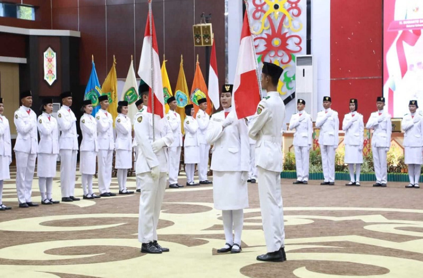kontenkalteng.com, Palangka Raya- Wakil Gubernur Kalimantan Tengah (Kalteng) H. Edy Pratowo mengukuhkan 54 orang putra-putri Kalteng dari 14 kabupaten dan kota menjadi anggota Pasukan Pengibar Bendera Pusaka (Paskibraka) di Aula Jayang Tingang, Kantor Gubernur Kalteng, Selasa (15/08/2023).
