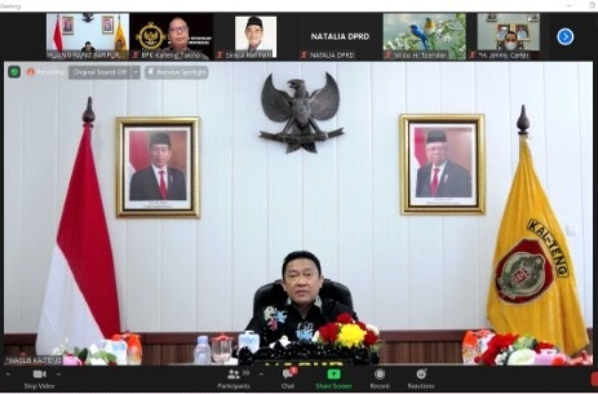 Wakil Gubernur (Wagub) Kalteng H. Edy Pratowo membacakan Pidato Gubernur Kalteng atas Jawaban Pemandangan Umum Fraksi Pendukung DPRD Kalteng terhadap 3 Rancangan Peraturan Daerah (Raperda ) Provinsi Kalteng secara virtual.