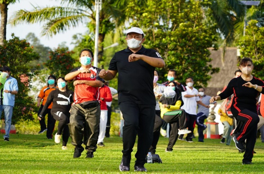 Wagub Kalteng H. Edy Pratowo saat ditemui seusai senam bersama menyampaikan, harus tetap melaksanakan olahraga rutin seperti biasa untuk meningkatkan imunitas tubuh di tengah pandemi Covid-19.