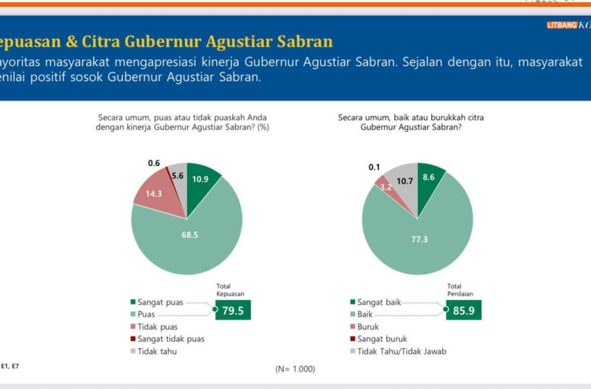 Berdasarkan hasil survei yang dilakukan Litbang Kompas pada akhir Juli 2025, tercatat tingkat kepuasan publik terhadap kepemimpinan Gubernur dan Wakil Gubernur Kalteng mencapai 79,5 persen, meskipun di tengah tantangan ekonomi global.