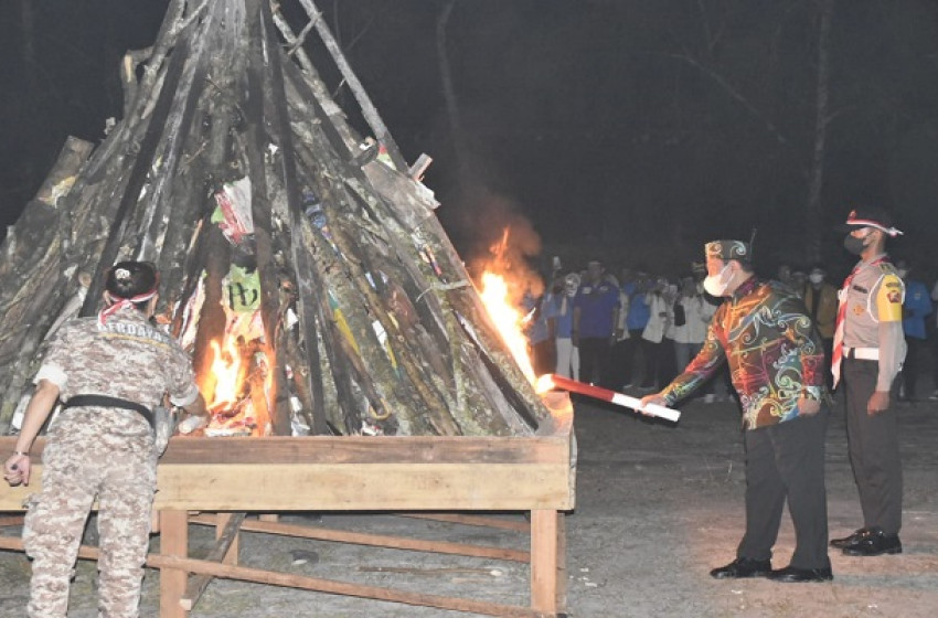 Wagub Kalteng, H. Edy Pratowo saat menyalakan api unggun (dok. Diskominfosantik Kalteng)