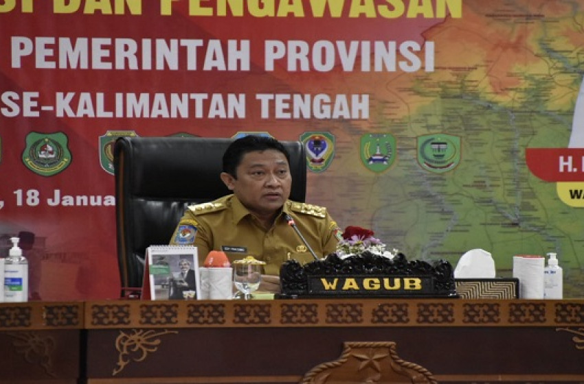 Wagub H. Edy Pratowo saat membacakan sambutan tertulis Gubernur Kalteng H. Sugianto Sabran menyampaikan rapat ini merupakan evaluasi keseluruhan terhadap penyerapan anggaran, baik APBD maupun APBN, proses pengadaan barang dan jasa Pemerintah, penerimaan pendapatan dan hal-hal lainnya pada tahun 2021.