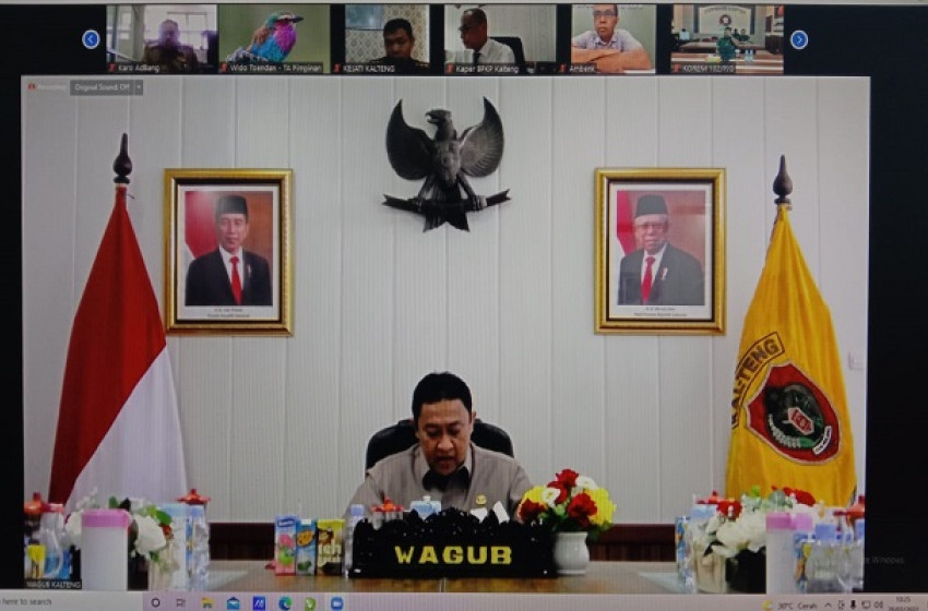 PALANGKA RAYA – Wakil Gubernur Kalteng H. Edy Pratowo membacakan Pidato Pengantar Gubernur Kalteng pada Rapat Paripurna (Rapur) ke-6 Masa Persidangan I Tahun Sidang 2022. Kegiatan ini dihadiri secara virtual dari Ruang Rapat Wagub Kalteng, Senin (28/3/2022). Rapur digelar secara hybrid.