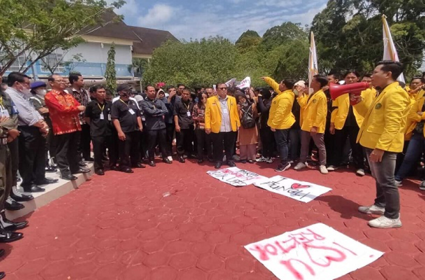 kontenkalteng.com, Palangka Raya-Ratusan mahasiswa Universitas Palangka Raya (UPR) menggelar unjuk rasa di kantor Rektorat universitas setempat, Jum'at, 8 September 2023.