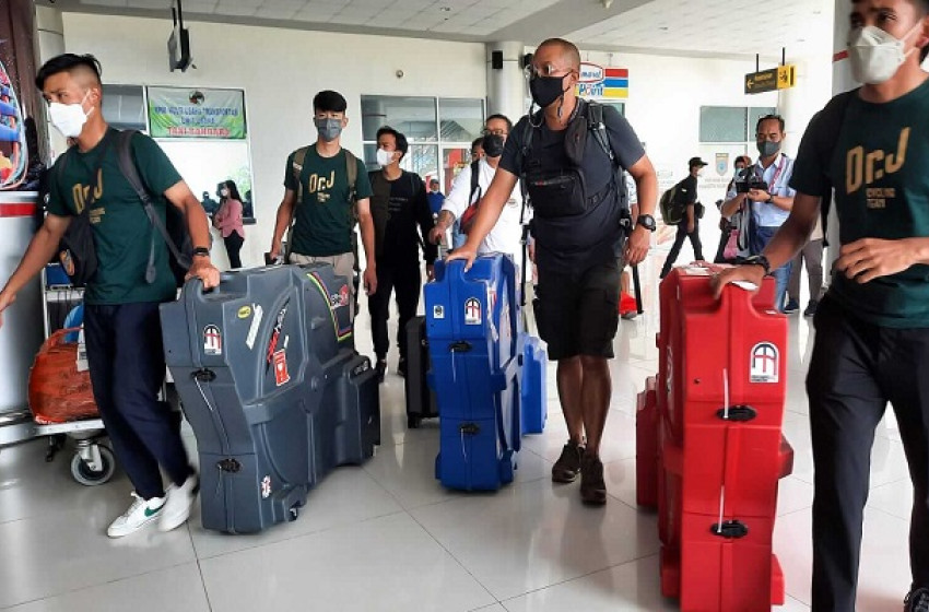 Sejumlah Peserta Kejuaraan Gubernur Kalteng Cup Road Race Tiba di Bandara Tjilik Riwut Kota Palangka Raya (dok. kontenkalteng.com)
